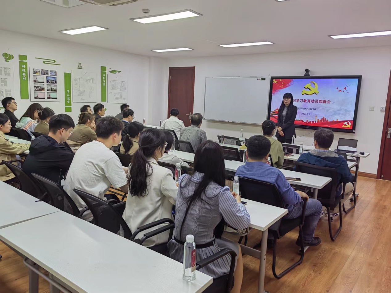 王媛媛首先传达学校党纪学习教育工作部署,解读学校及学院党纪学习教育工作方案,从党纪学习教育的背景、目标要求、学习任务、如何具体落实学习任务几方面,向与会师生进行了党纪学习教育的动员和部署。