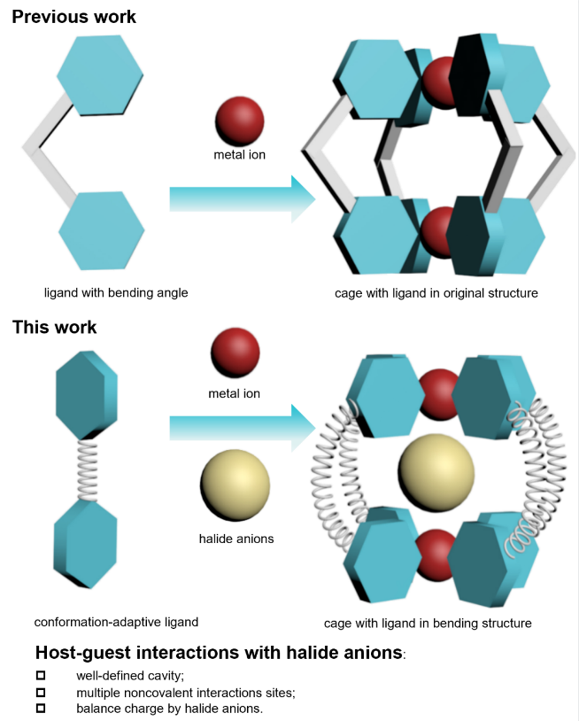 综上所述,本项工作利用二氢吩嗪配体的构象自适应特性,成功构筑了对卤素离子具有极强结合能力的超分子配位笼,为卤素离子受体的设计与结合机制研究提供了新的思路与方案,并对超分子阴离子结合光催化研究具有一定启发意义。我院姜卫玲博士与黄斌博士是论文的第一作者,杨海波教授与史学亮教授是论文的通讯作者。该工作得到了国家重点研发计划、国家自然科学基金和上海市自然科学基金的支持。